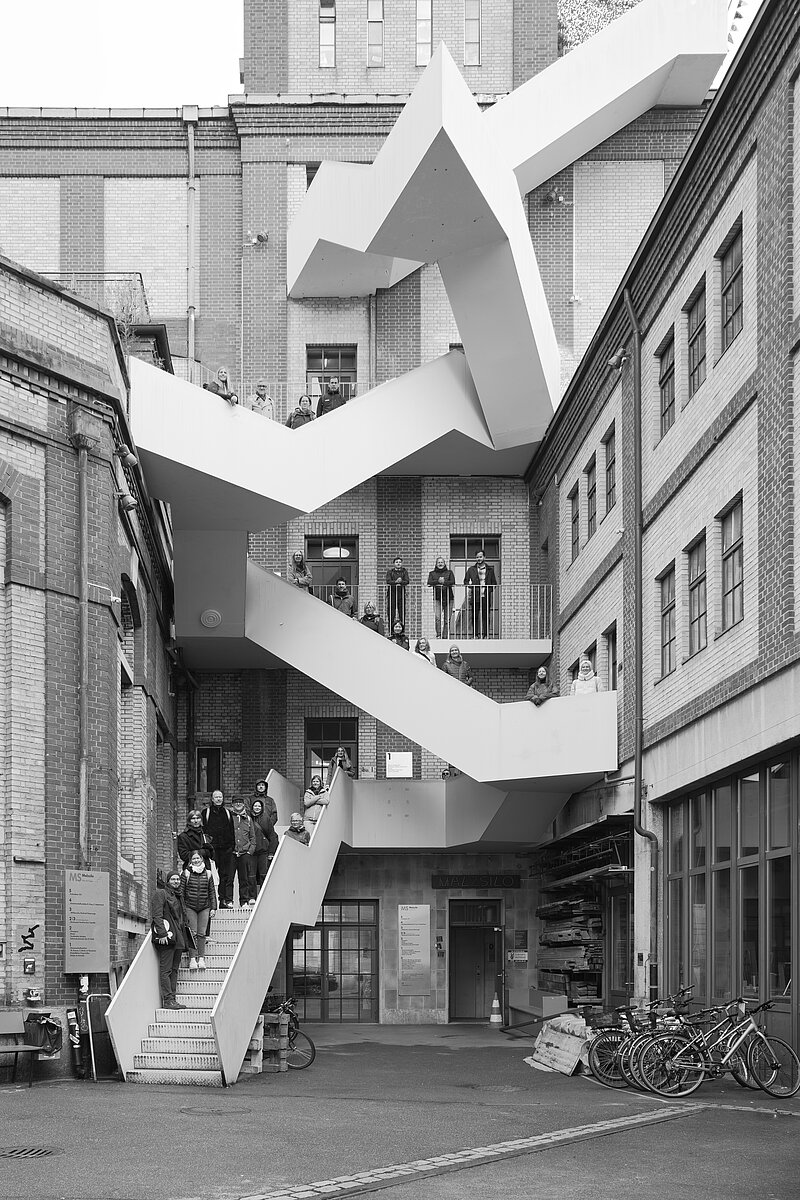 Liechti Graf Zumsteg gewinnen den privaten Studienauftrag für den Neubau zweier Wohnhäuser. In einem Atelierwohnhaus entlang der Strasse stapeln sich Gewerberäume und doppelgeschossige Wohnateliers mit privaten, lärmgeschützten Patios. Das zweite Haus steht senkrecht zur Strasse. Es folgt mit seiner gestaffelten Form einem Bachlauf und ist mittels Abtreppungen in die ansteigende Topografie eingefügt.